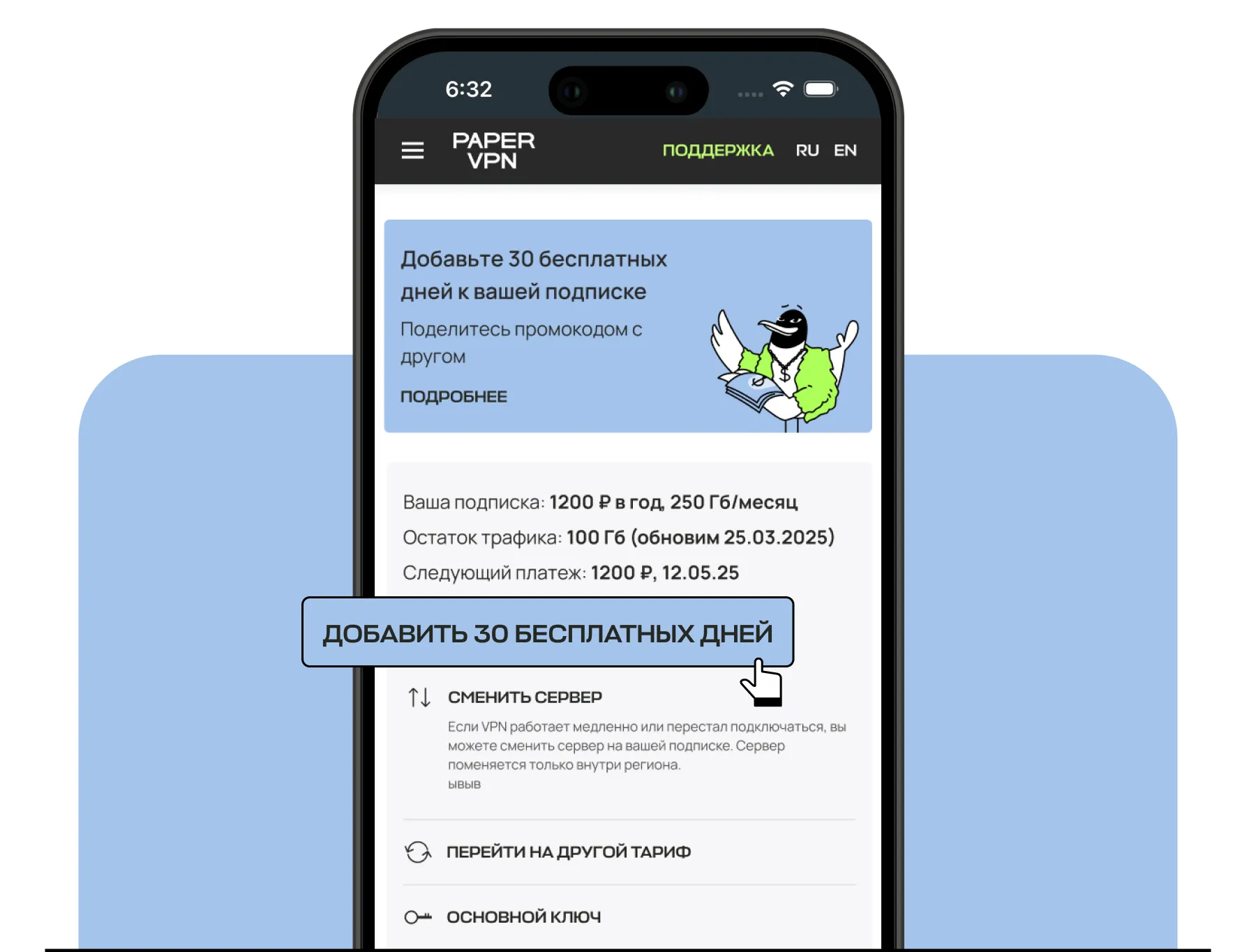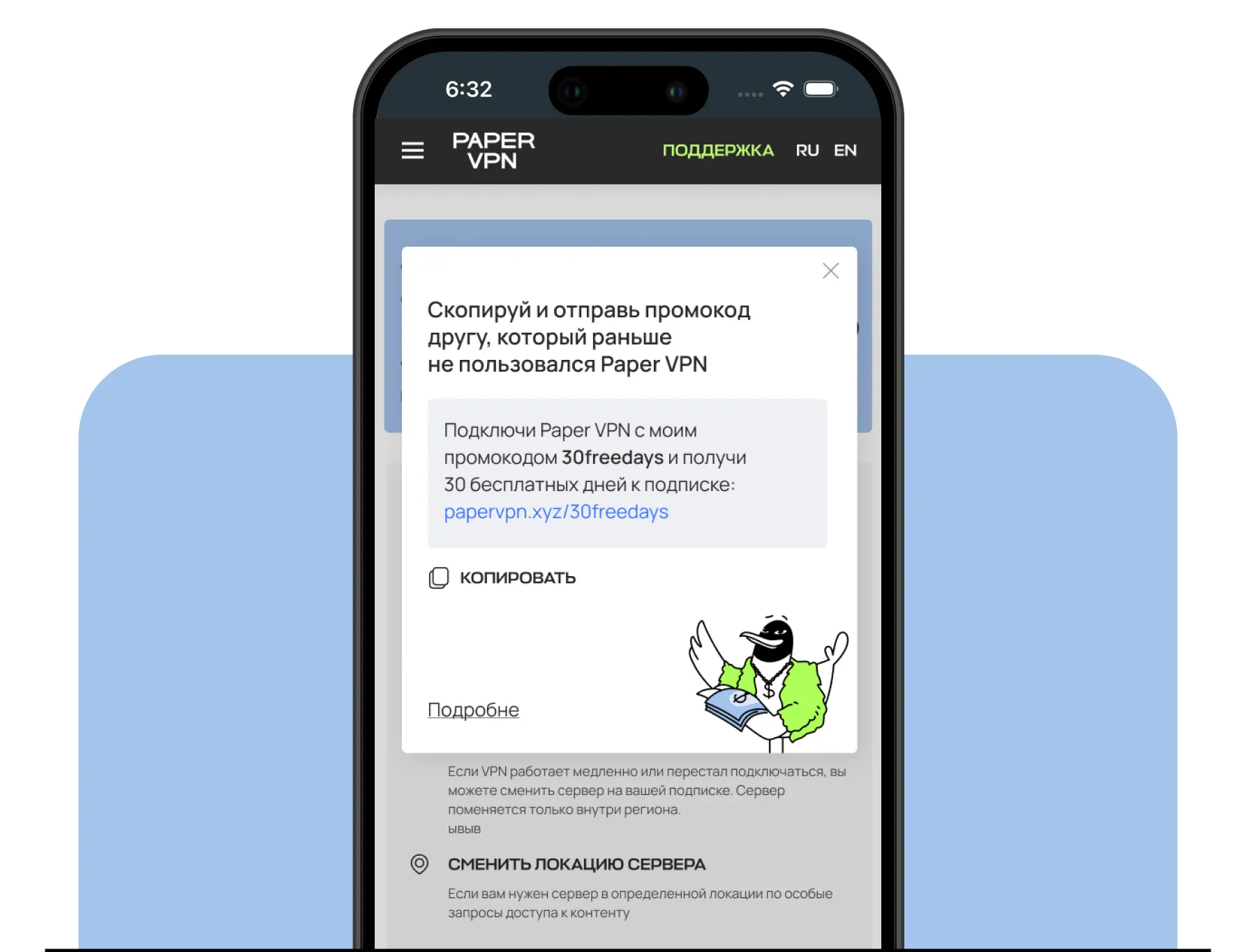 Если вы приобрели Paper VPN, но столкнулись с проблемами в работе сервиса, напишите нам в телеграм-бот или на support@papervpn.io. Мы решим вопрос или вернем вам деньги.